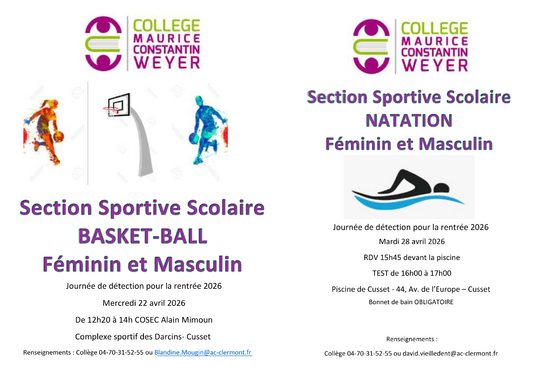 Les détections des sections sportives natation et basket